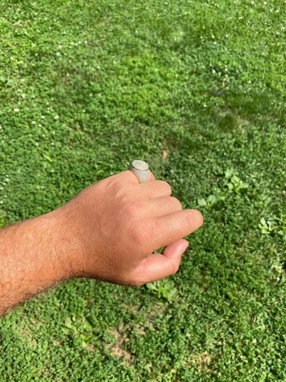 14k Gold Over Solid 925 Sterling Silver Men’s Iced Diamond Pinky Ring HIP-HOP
