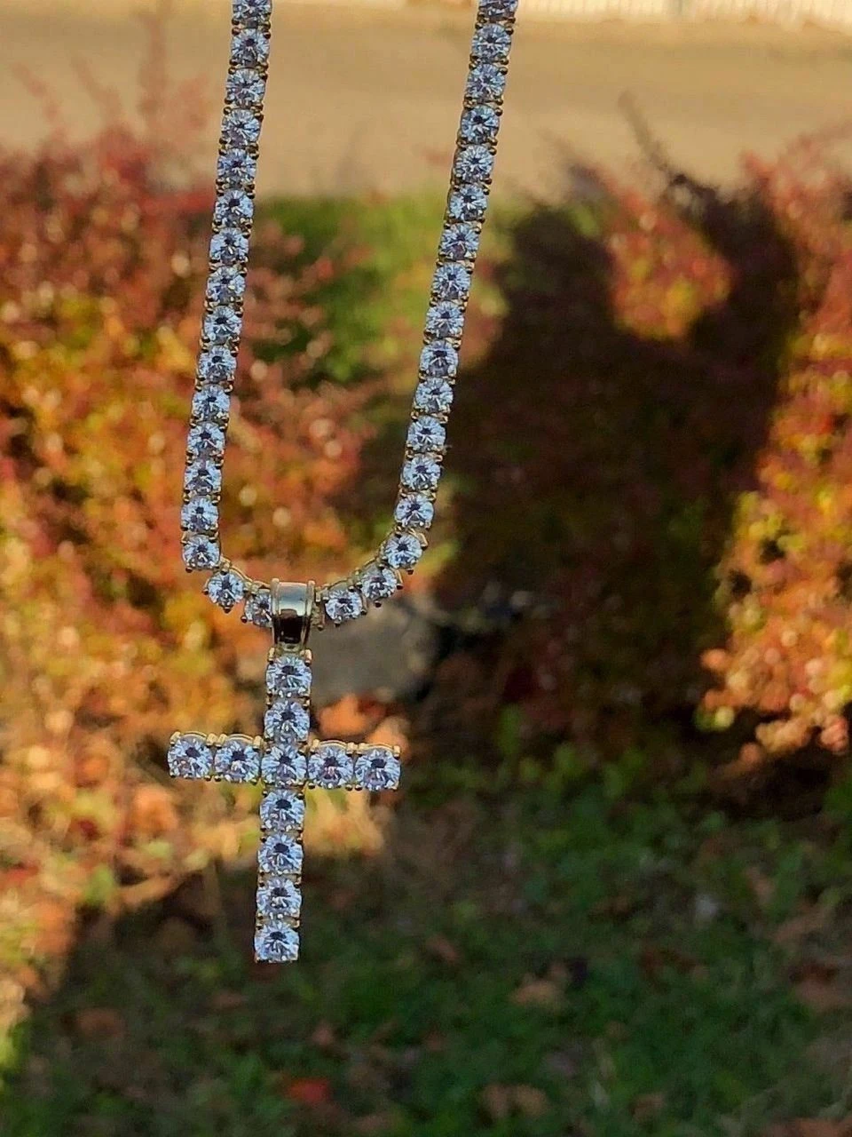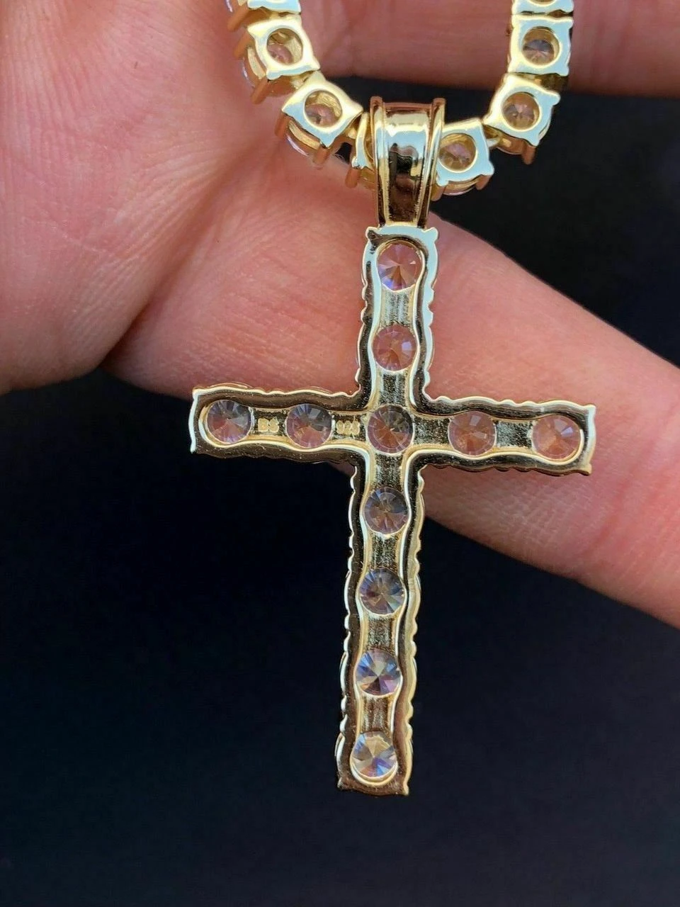 | Chain | Cross Only, Cross & 18" Tennis Chain, Cross & 20" Tennis Chain, Cross & 22" Tennis Chain, Cross & 24" Tennis Chain, Cross & 26" Tennis Chain, Cross & 28" Tennis Chain, Cross & 30" Tennis Chain |