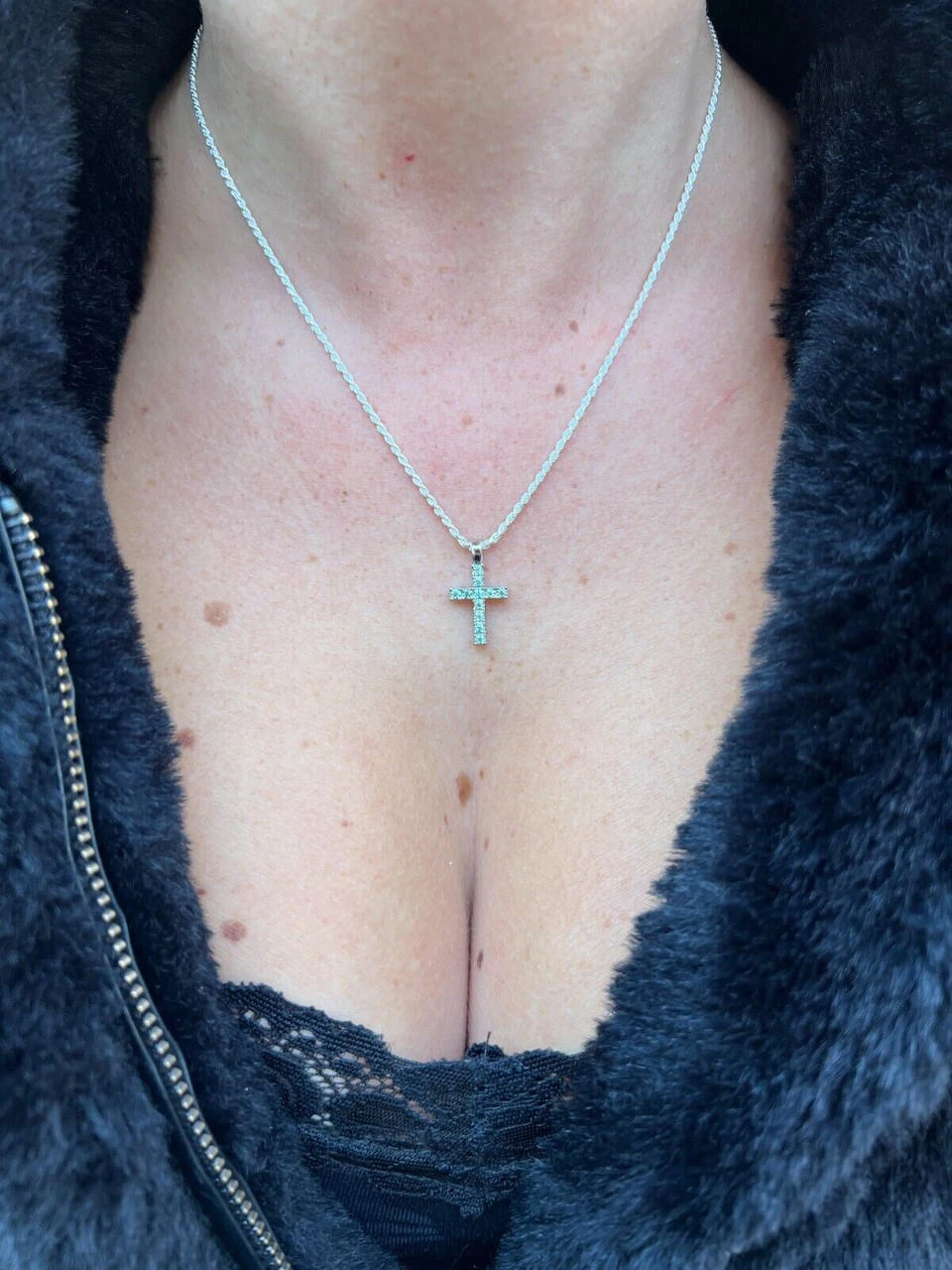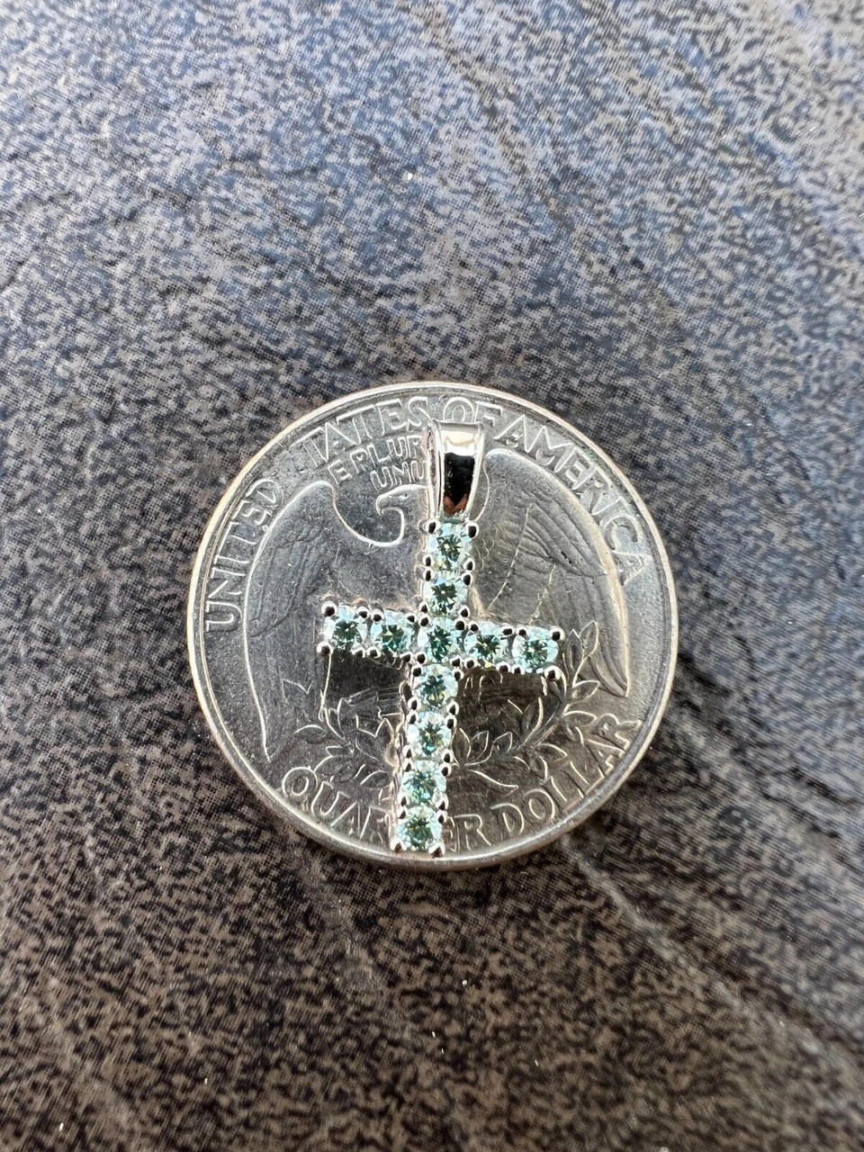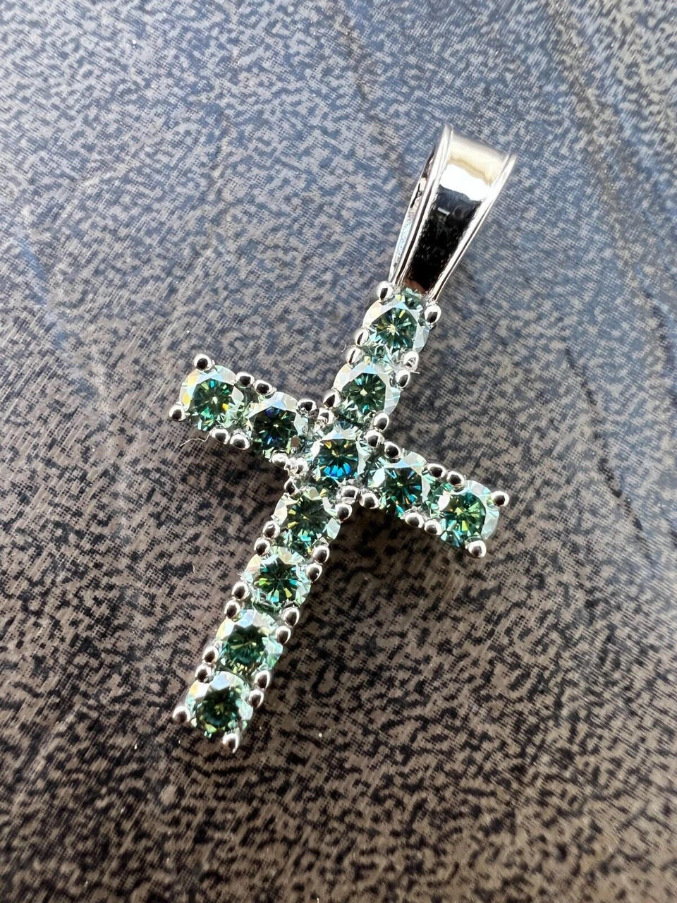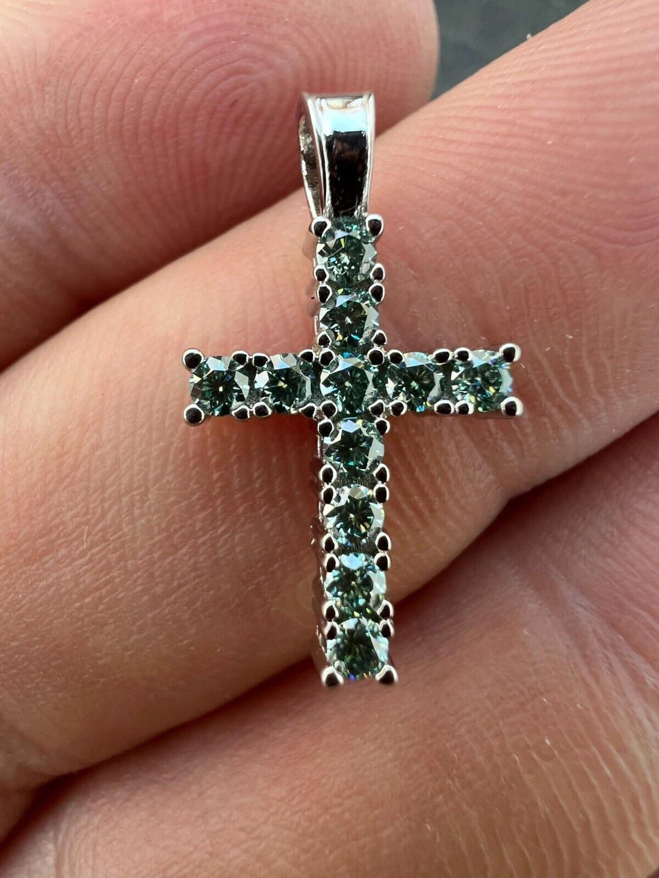 Gorgeous solid 925 TINY blue green moissanite silver men’s cross