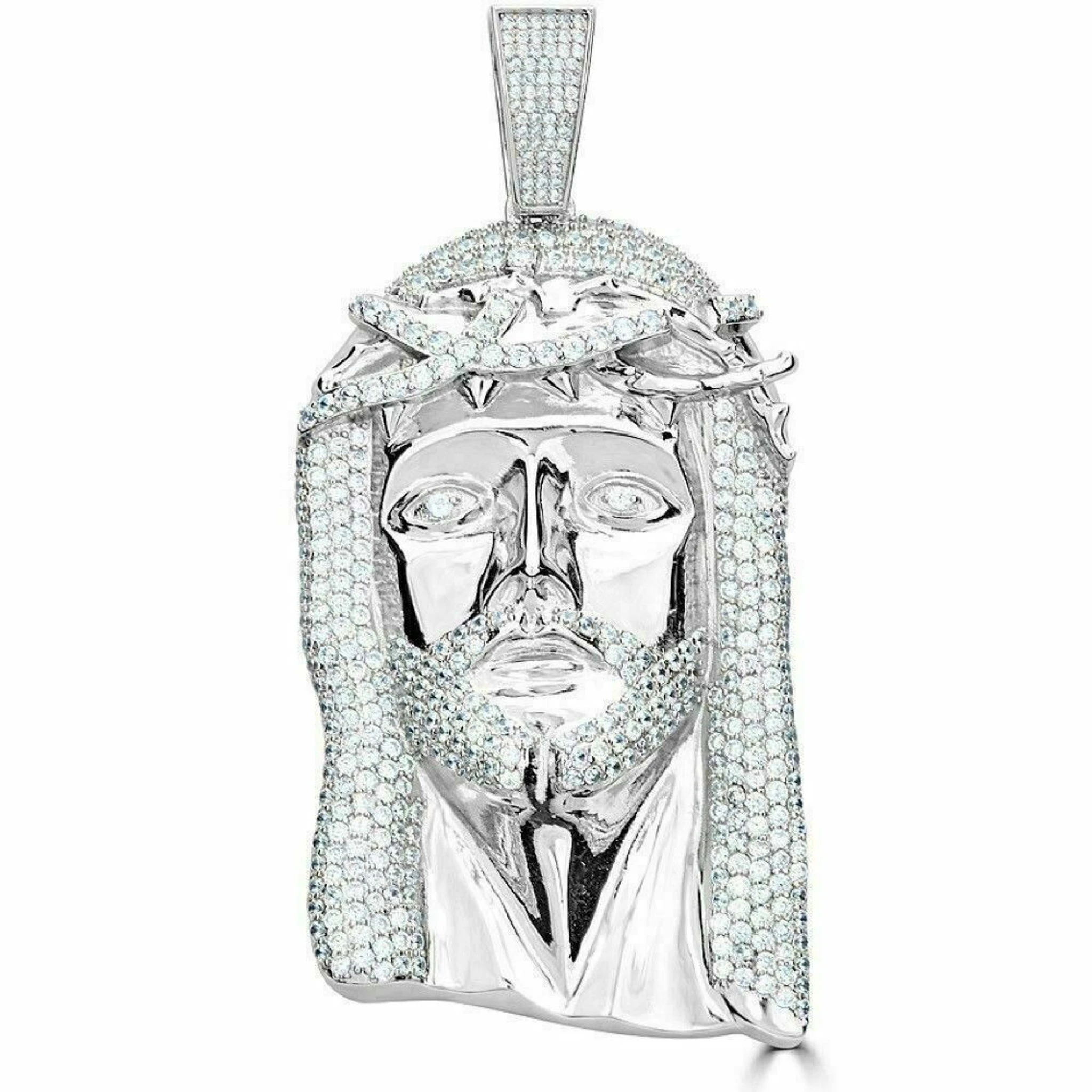 HUGE Hip Hop Mens Jesus Head Diamond Piece Pendant Real SOLID 925 Silver ICED