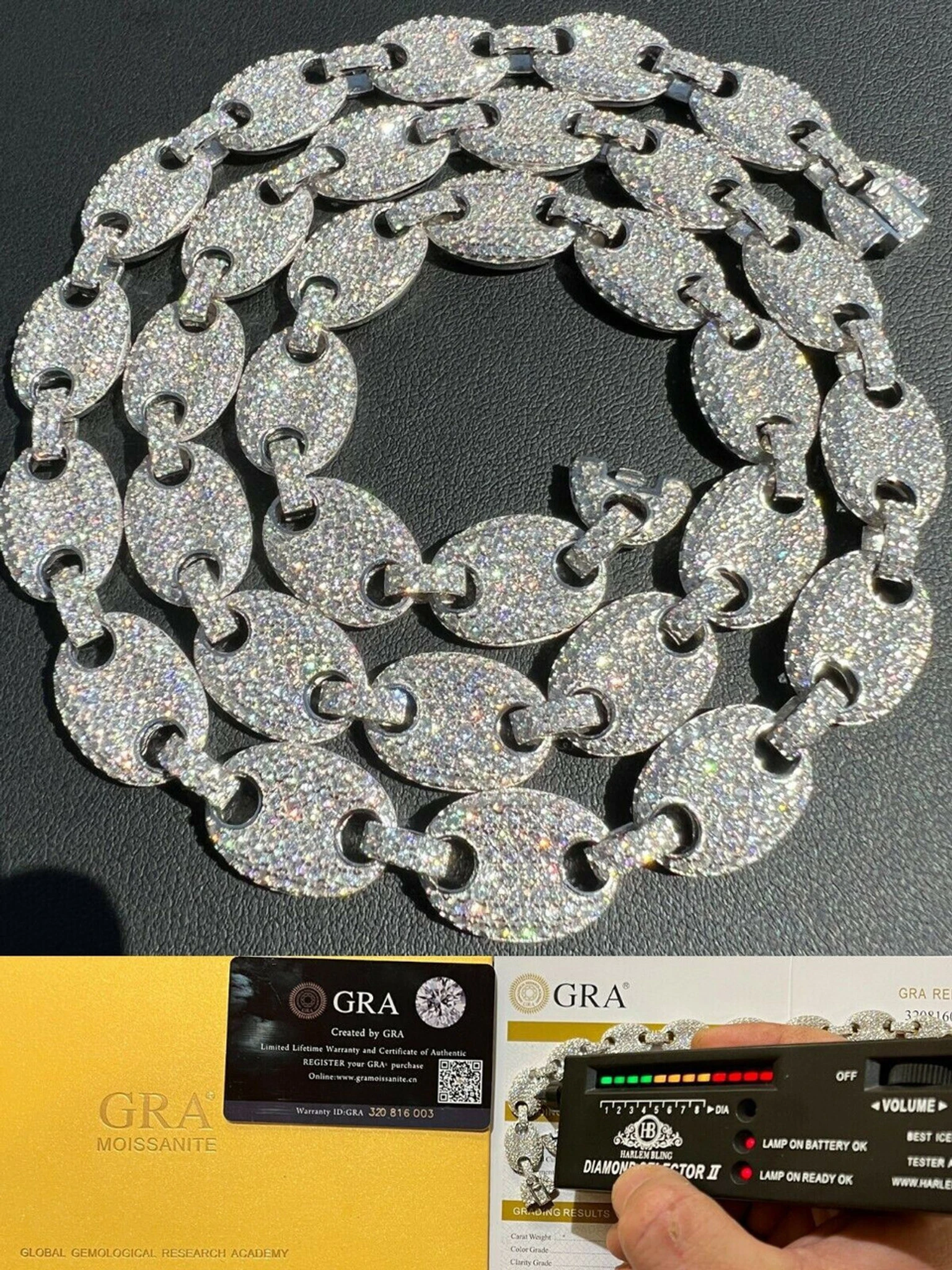 Gorgeous Gucci link Mariners link chain with moissanite stones