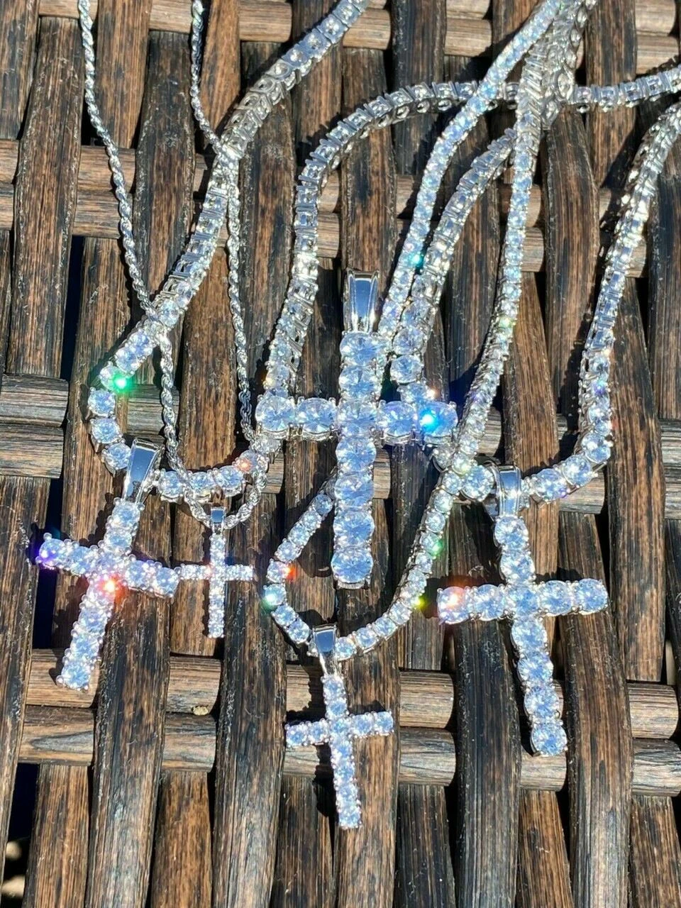 Ladies & Mens Diamond Cross Pendant Solid 925 Sterling Silver Iced Necklace
