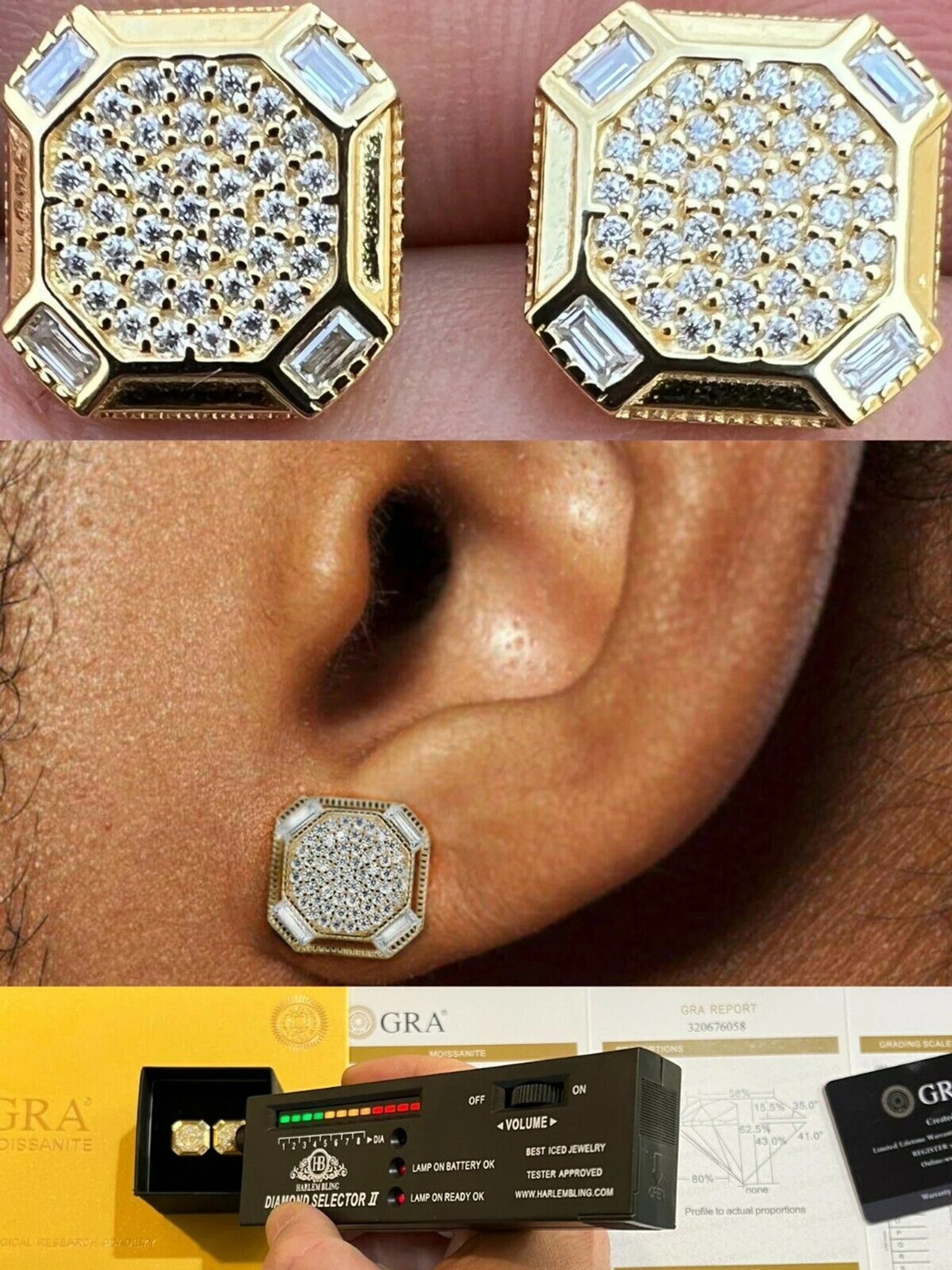 Amazing mens big size moissanite earrings