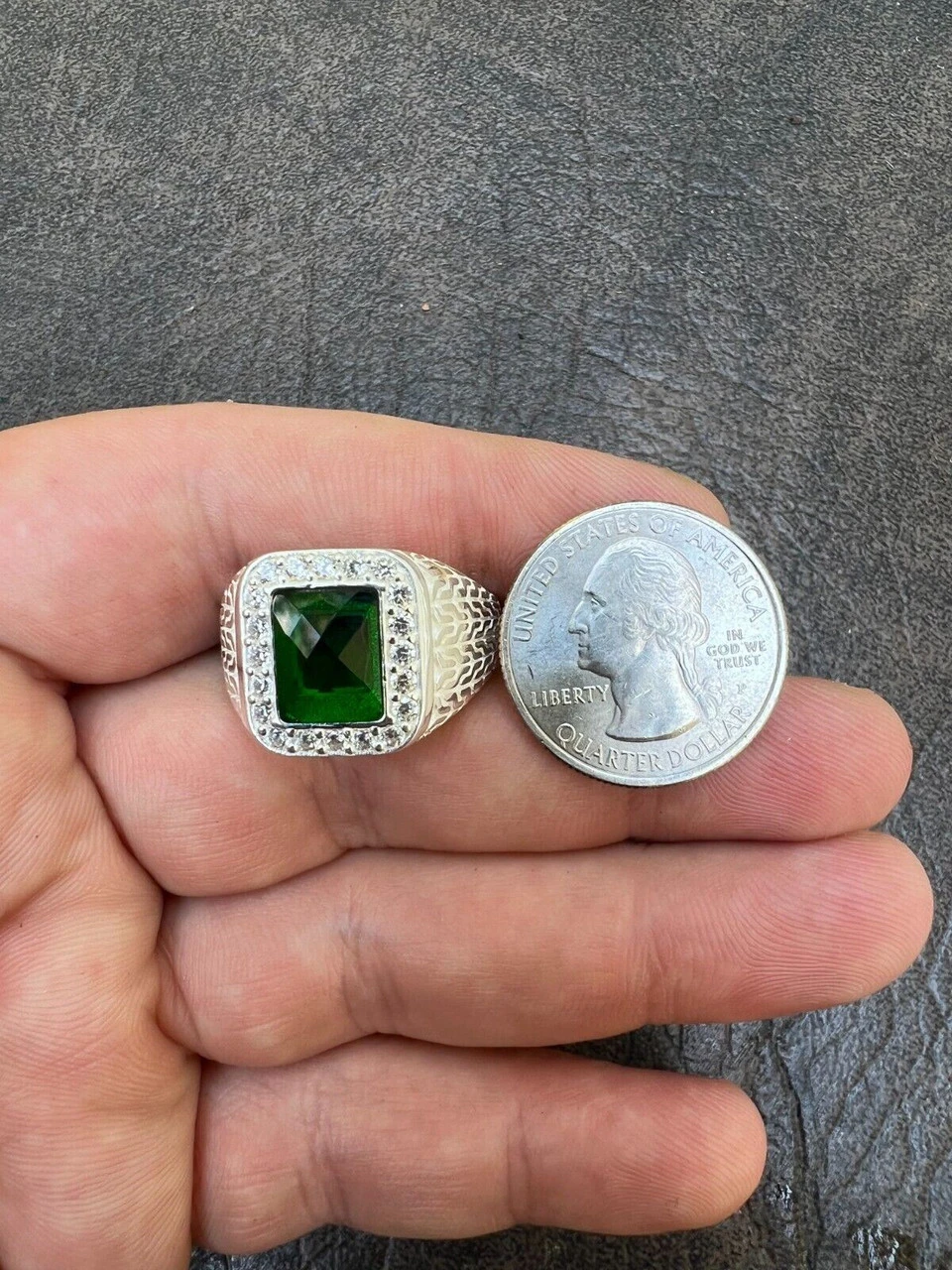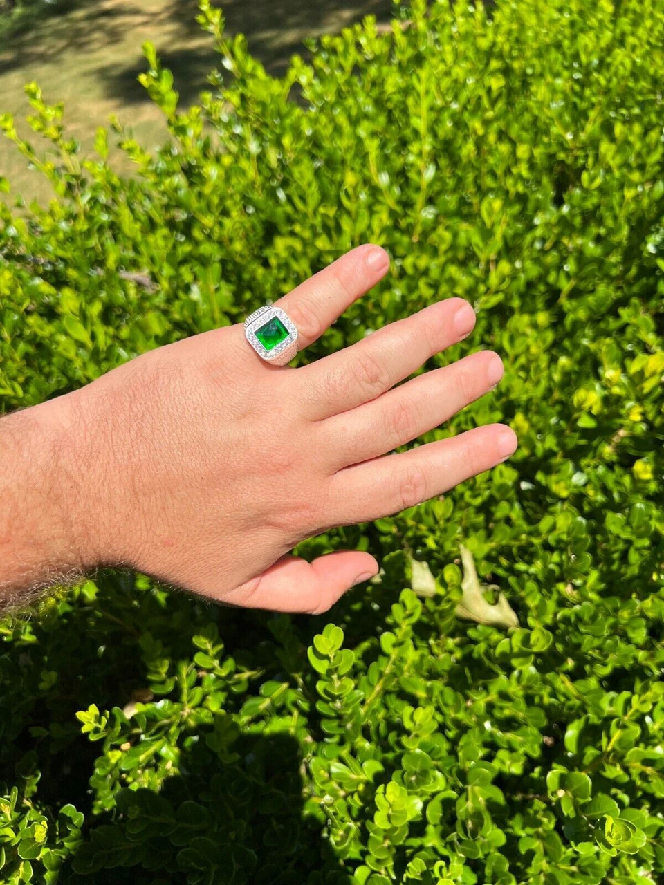 Nice large rectangular man made green stone surrounded by man made diamonds