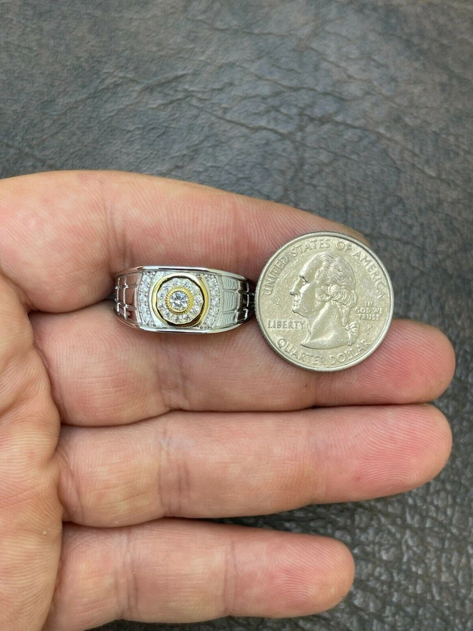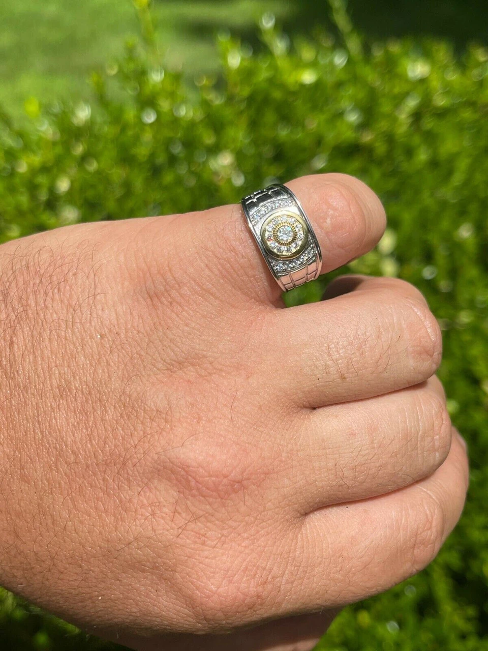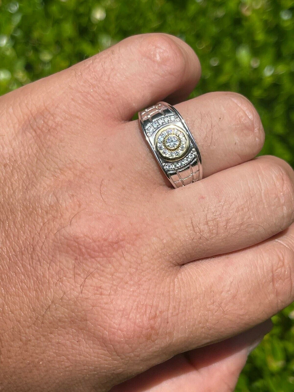 Men’s Solid 925 Silver 14k Gold Vermeil Diamond RING Size 7 8 9 10 11 12 13 ICED