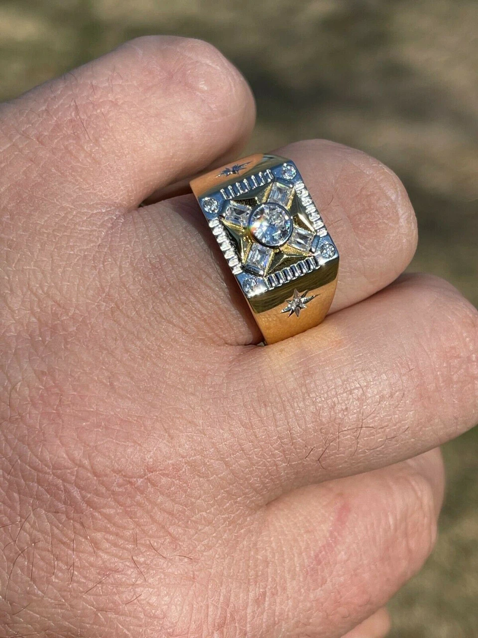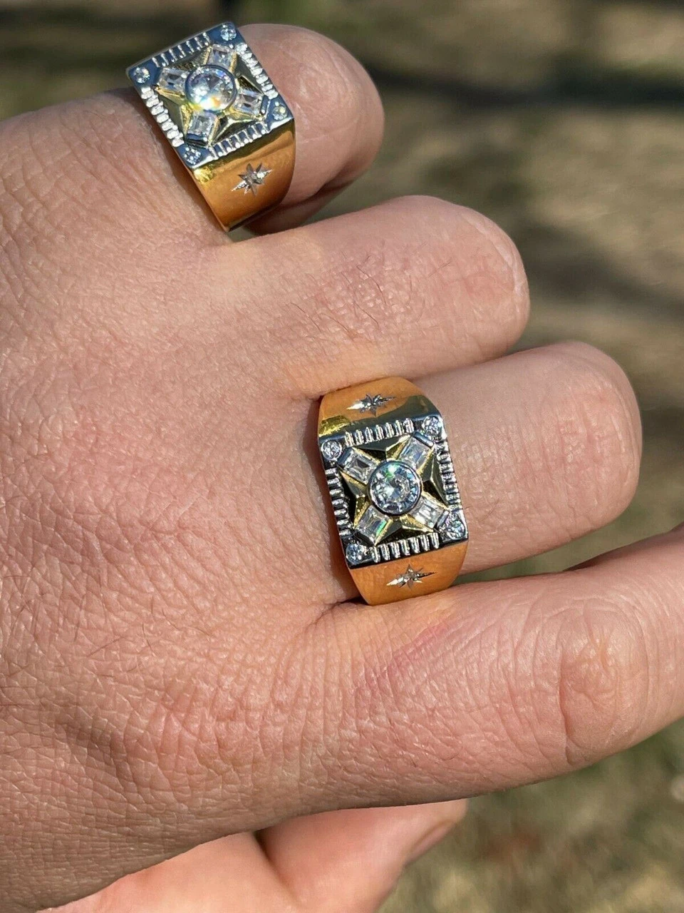 Be the first to review “Mens Iced 14k Gold & Real Solid 925 Sterling Silver Diamond Solitaire Ring Pinky” Cancel reply