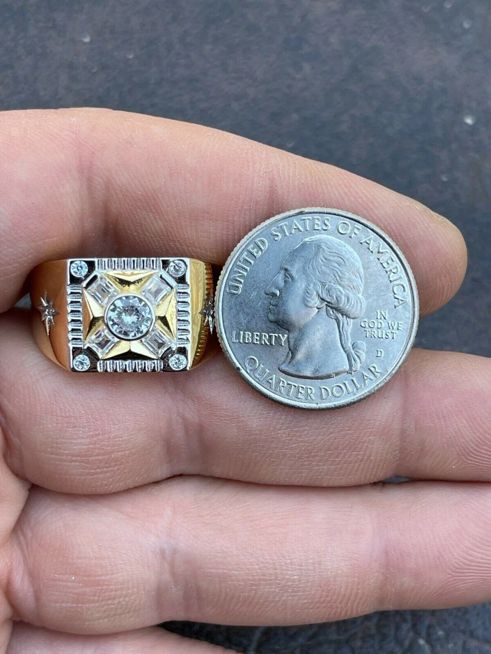 Mens Iced 14k Gold & Real Solid 925 Sterling Silver Diamond Solitaire Ring Pinky