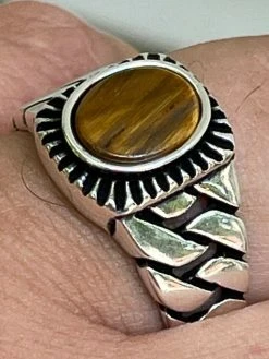 Mens real solid 925 silver tiger’s eye ring.