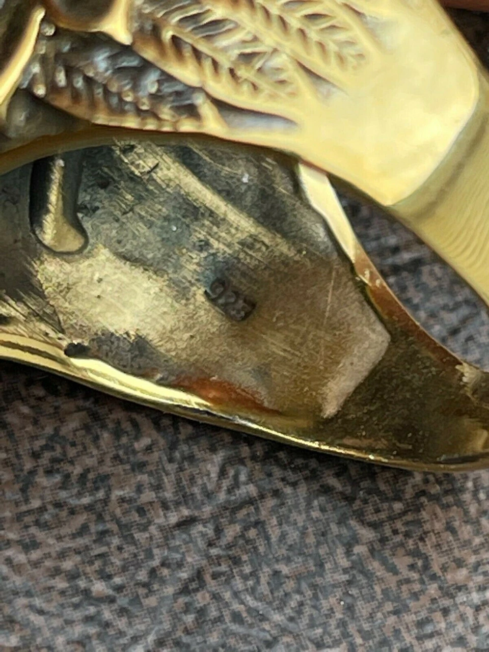 Mens Real 14K Gold Over Solid 925 Sterling Silver Large Indian Head Chief Ring