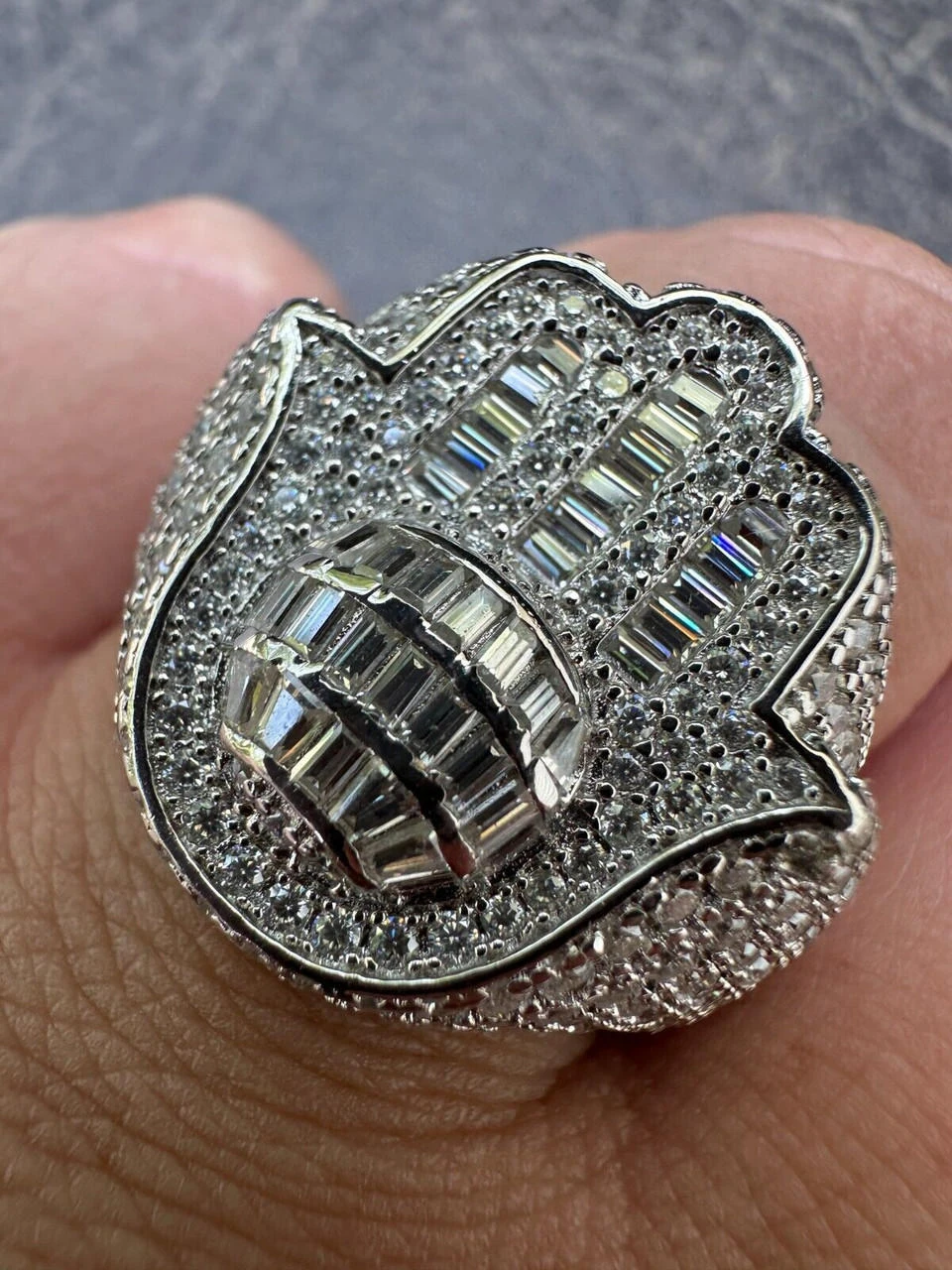 Gorgeous men’s Hamsa moissanite ring