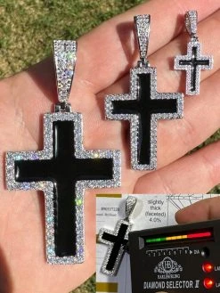 Colorful black enamel with moissanite surrounding it – match with your outfits or mood and stand out with this unique cross
