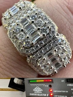 4.12ct round stones, 3.54ct baguettes, 0.8ct princess cut: total 8.46ct! Stones all around even sides!