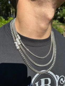 Iced MOISSANITE Clasp Stainless Steel & 925 Silver Franco Chain Necklace 4-6mm
