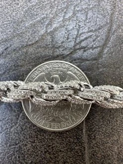 MOISSANITE Iced 7.5mm Rope Chain Necklace Real 925 Silver Men’s Hip Hop 16-28″