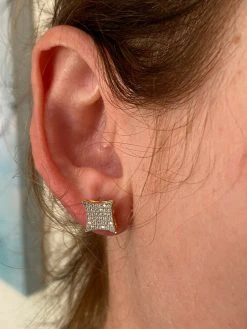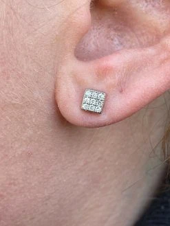 0.2ct REAL Natural VS G Diamond Mens Ladies Earrings Iced Small 5mm Square Studs