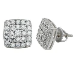 925 Silver Iced Hip Hop MOISSANITE Square Screwback Earrings Pass Diamond Tester