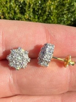 BIG Moissanite Iced 14k Gold Vermeil Real Earrings Large 10mm Mens Hip Hop Studs