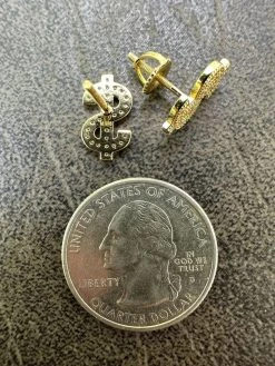 MOISSANITE 925 Silver 14k Gold Plated Men Ladies Dollar Sign $ Money Earrings