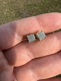 Real Moissanite 14k Gold Vermeil Iced Hip Hop Earrings Stud Pass Diamond Tester