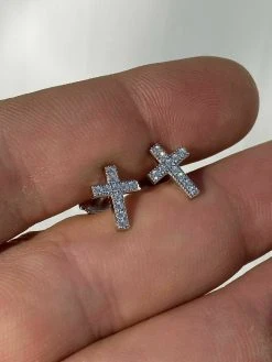 Real MOISSANITE 925 Silver Small Cross Earrings Studs Iced Pass Diamond Tester