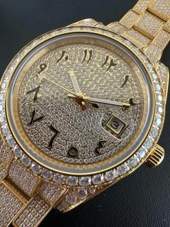 No Logo 16ct MOISSANITE Mens Gold Presidential Watch Honeycomb Iced Arabic Dial
