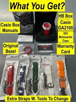 MOISSANITE Real 925 Silver Iced Red Casio G Shock GA-2100 Hip Hop Watch & Extras
