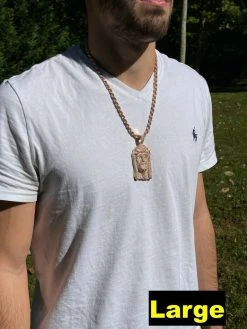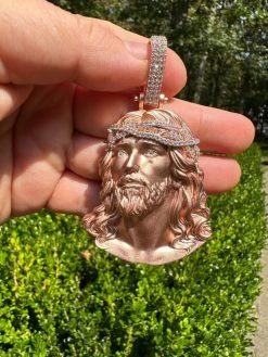14k Rose Gold Over Solid 925 Silver MOISSANITE Jesus Piece Iced Pendant Necklace