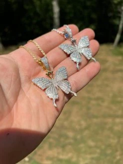 MOISSANITE Large Hip Hop Butterfly Iced Real 925 Silver / Gold Plated Necklace