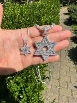 Moissanite Jewish Star Magen David Pendant Iced Necklace Silver Real 925 Silver