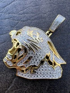 MOISSANITE Real Silver / Gold Panther Puma Cougar Necklace Pass Diamond Test