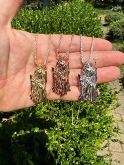 MOISSANITE Santa Muerte Grim Reaper Pendant 925 Silver / 14k Gold Rose Necklace