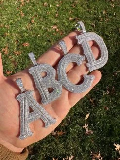 Real Moissanite Bubble Letter Gold Silver Initial Pendant Iced Pass Diamond Test