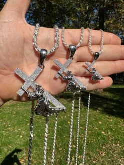 Solid 925 Silver Real MOISSANITE Jesus Carrying Cross Pendant Iced Necklace