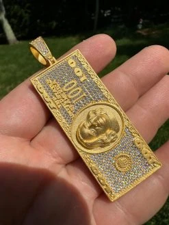 Moissanite $100 Dollar Bill 925 Silver/Gold Plated Iced Hip Hop Pendant Necklace