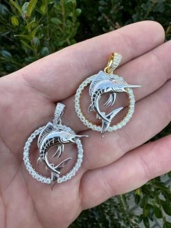 MOISSANITE 925 Silver / Gold Iced Swordfish Fishing Pendant Marlin Fish Necklace