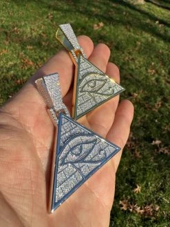 MOISSANITE All Seeing Illuminati Eye Masonic Pyramid Medallion Necklace Silver