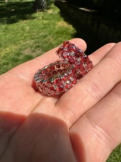 Red Moissanite Ring Real 925 Sterling Silver Hip Hop Iced Tennis Band Big 10mm