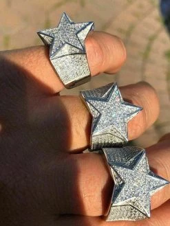 Solid 925 Silver Iced Hip Hop Out STAR Pinky RING MOISSANITE Pass Diamond Tester