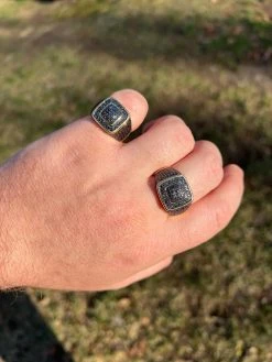 Black MOISSANITE Mens Real 14k Gold Vermeil 925 Silver Ring Pass Diamond Tester