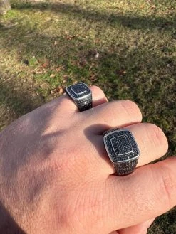 Black MOISSANITE Mens Real Solid 925 Sterling Silver Ring Pass Diamond Tester