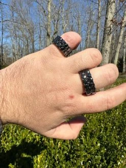 Black Moissanite Ring Real 925 Silver Oxidized Rhodium Hip Hop Iced Tennis Band