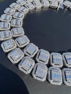 Baguette MOISSANITE Real 925 Silver 15mm Square Chain Necklace Pass Diamond Test