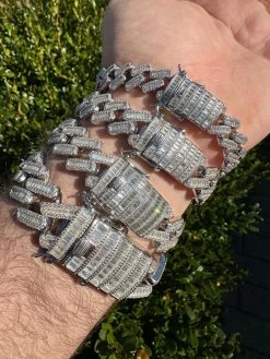 Baguette MOISSANITE Real Miami Cuban Link Bracelet Iced Solid 925 Silver 12-22mm