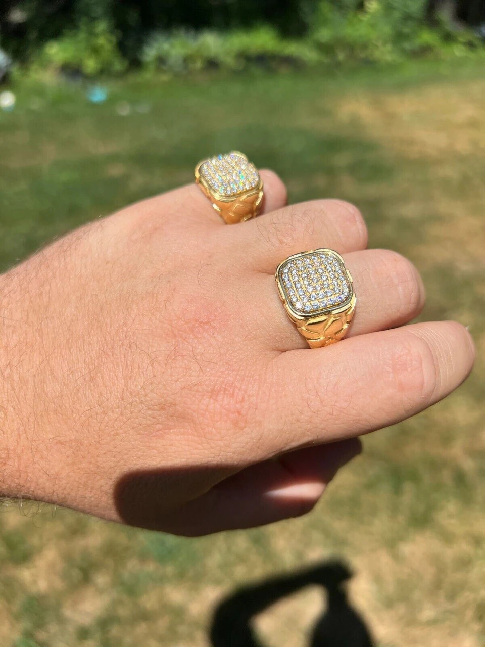 Gorgeous men’s square hip hop nugget ring