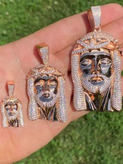 14k Rose Gold Over Real 925 Silver Hip Hop Jesus Piece Pendant Iced Men Necklace