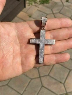 14k Rose Gold Over Solid 925 Silver Mens Large Cross 3ct Diamonds 2×1.5” Hip Hop