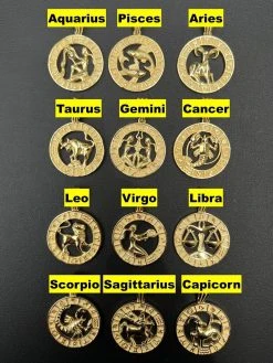 14k Gold Plated Real Solid 925 Silver Zodiac Astrology Sign Pendant Necklace 1″