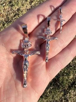 14k Rose Gold Plate Solid 925 Silver Cross Jesus Piece Crucifix Pendant Necklace