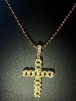 Cuban Link Cross Pendant W. Chain Sterling Silver 925 *14k Gold Plated* Diamond