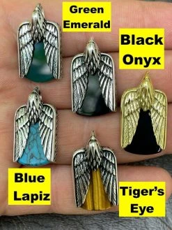 Real Solid 925 Silver Mens Eagle Dog Tag Pendant Green Black Blue Stone Necklace